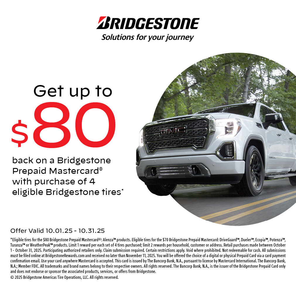 Instantly with the purchase of 4 eligible Bridgestone tires